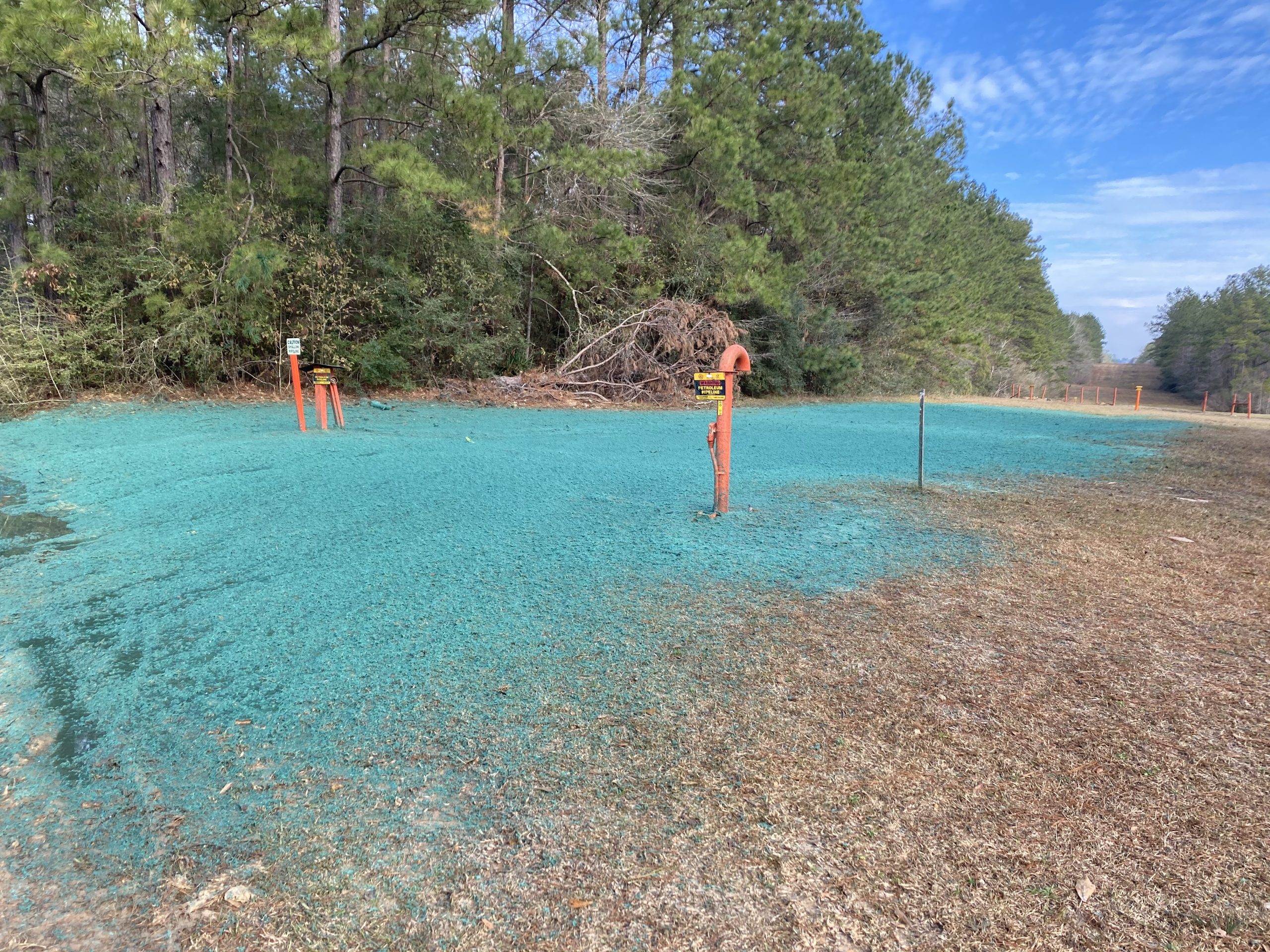 Used as an alternative to the traditional process of broadcasting and sowing dry seed, hydro-seeding promotes quick germination and inhibits soil erosion. Areas to apply hydro-seeding include tank farm fire walls and ditches.